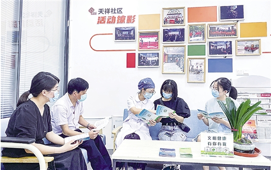近日,百官街道南丰社区卫生服务中心社区医生在天祥社区宣传全科医生家庭签约健康服务相关内容。近年来,我区大力推进家庭医生签约服务工作,让更多的“家庭医生”走近百姓身边,真正发挥其群众健康“守门员”作用。截至目前,全区家庭医生签约群众已达361008人。记者 傅永苏 摄