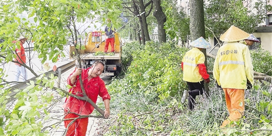 近日,工人正在修剪104国道上的行道树。连日来,区公路与运输管理中心上浦站加强对104国道的隐患治理,修剪过于茂盛的行道树,确保道路交通标识标牌、路名路牌等醒目可见,消除道路交通安全隐患。