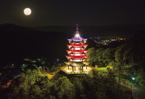 9月21日,位于下管镇的应乾塔灯光秀正式亮相,皓月当空,错落有致的灯光和古塔交相辉映。