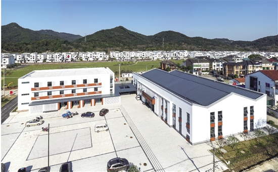 近日,梁湖街道潘家陡新村一侧,村级公共服务中心已基本建成,工人正在进行内部装修布置工作,航拍镜头下,白墙黑瓦的中式建筑与新村民居的古朴风格交相辉映。