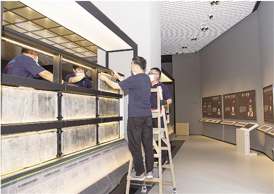 近日,上虞博物馆新馆天香楼碑廊内的120块碑文上架安装布展完毕。随着天香楼碑廊布展完工,该博物馆布馆接近尾声。