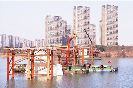 2月21日,曹娥江城市人行桥建设顺利推进,自春节复工以来,项目建设驶入快车道,施工方倒排时间节点,工作进度十分喜人。