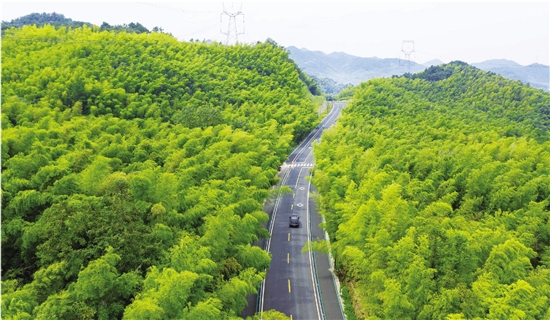 近日,长塘镇竹海大道,美丽公路绵延在乡间山边,道路两旁茂林修竹,沿途田园风光宁静美好。