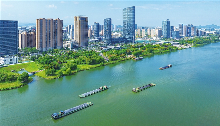 一卷运河图,两岸多彩景。10月14日,曹娥江上舟楫往来,繁忙而有序,构成一幅经济生态与人文底蕴交织的画卷。