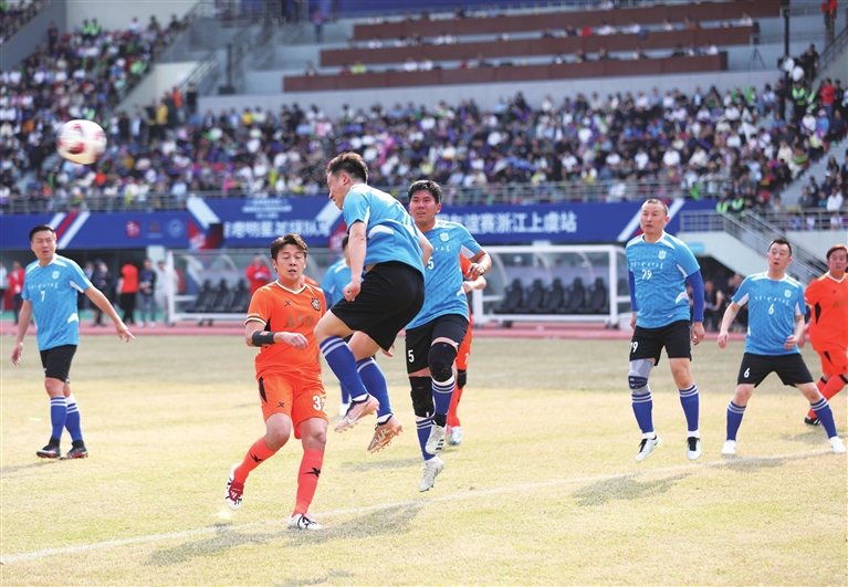 本报讯 (记者 成波 文 记者 魏新宇 贺陶 通讯员 于江 摄) 能把一场足球赛变成演唱会的,或许只有香港明星足球队了。3月23日下午,春光明媚。谭咏麟、黄日华、何家劲、李子雄等香港演艺明星来到上虞体育中心体育场,与充满活力与多元特色的青春上虞队踢了一场集足球与音乐为一体的“表演赛”,带领现场8000余名观众沉浸式回忆青春岁月。