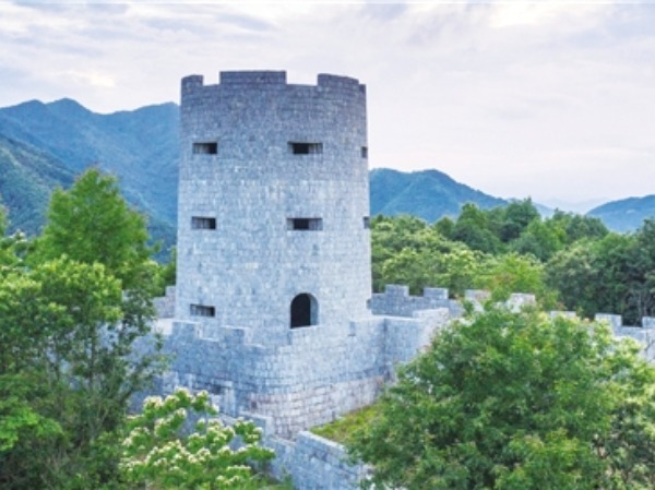 6月12日,无人机拍摄的岭南乡许岙村锦峰碉复建后新貌。目前,锦峰碉原址复建项目已经完成并对游客开放。项目包含一个大碉堡及两个小碉堡的碉堡主体建设、场外广场铺设,同步完成上山游步道铺设及周边绿化。